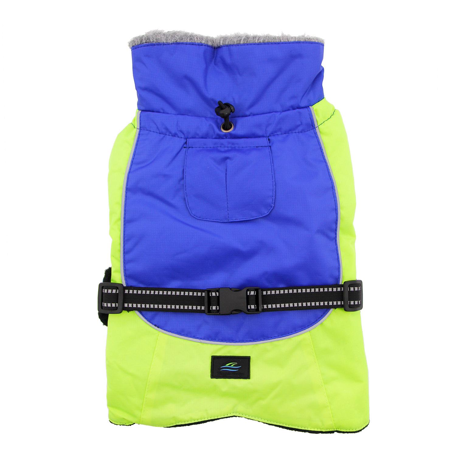 They come with adjustable straps, covered d-ring access hole, fur lined collar with neck cinch, and reflective night safety straps and trim.